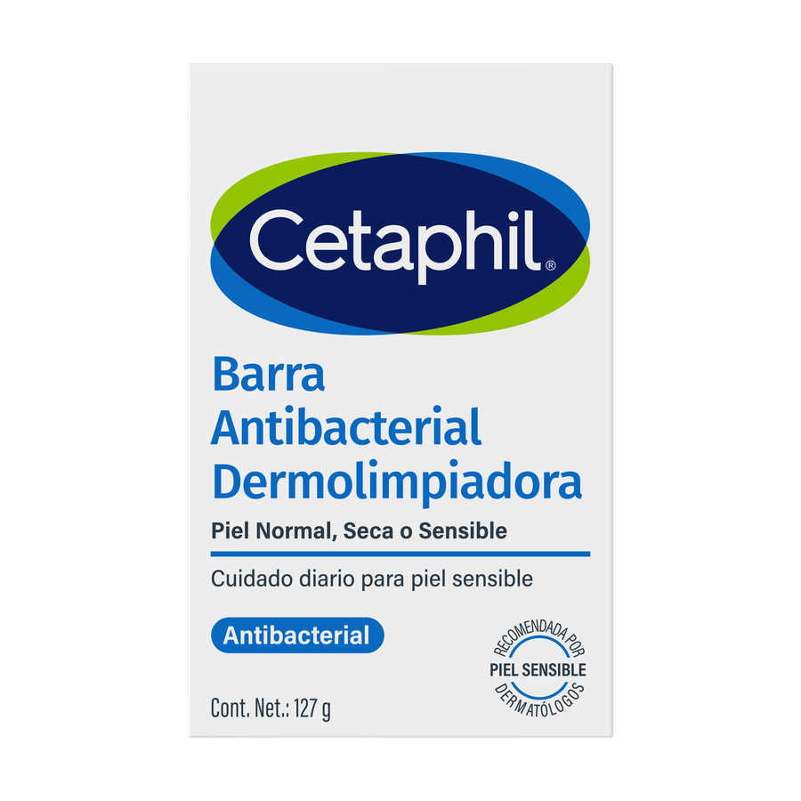 CETAPHIL Antibacterial Barra es un Jabón Syndet Dermolimpiador de limpieza facial y corporal con un importante bactericida que remueve microorganismos eficazmente.